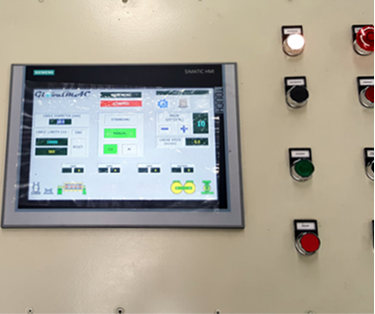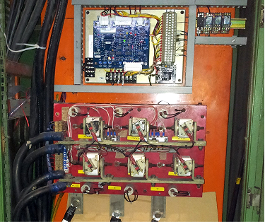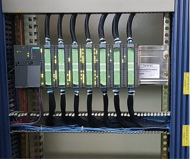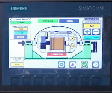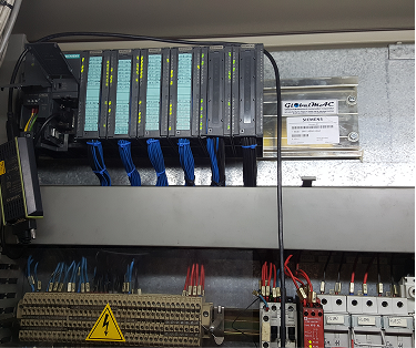 Upgrade from Siemens S5 to Siemens S7-1500. Line synchronization is all done in the PLC thus all the analog synchronization boards were eliminated. A touch screen HMI is also installed to replace the OP text display.