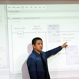 The Totally Integrated Automation Portal (TIA Portal) forms the work environment for integrated engineering with SIMATIC STEP 7 and SIMATIC WinCC. The second part of the SIMATIC TIA Portal programming training is based on the knowledge of the TIA Portal gained in the SIMATIC S7 TIA Portal programming 1 course, including STEP 7, SIMATIC S7, HMI, connection of drives, and PROFINET IO. This will expand the knowledge of complex operations in statement lists (STL) and in Structured Control Language (SCL). Along with analogue value processing and data administration with complex data types, the evaluation and handling of program-related errors are also considered. Additionally, learn how to display messages on the operator control and monitoring system (HMI). Likewise, to gain new impetus and ideas for efficient PLC programming to deepen the theoretical knowledge with numerous practical exercises on a TIA system model. This consists of a SIMATIC S7 automation system, ET200 distributed I/O, Touch panel, and drive.
